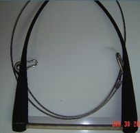 Stainless steel bar with cable inside beautiful four strand cotton rope. Bar width and length of ropes made to customer specs.